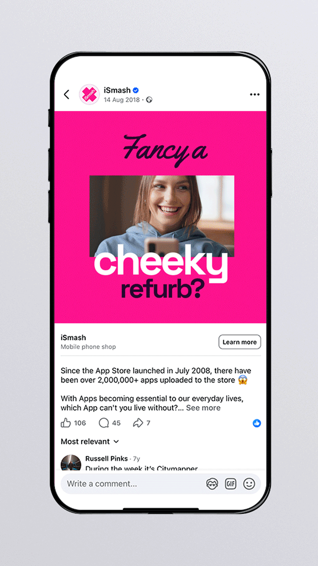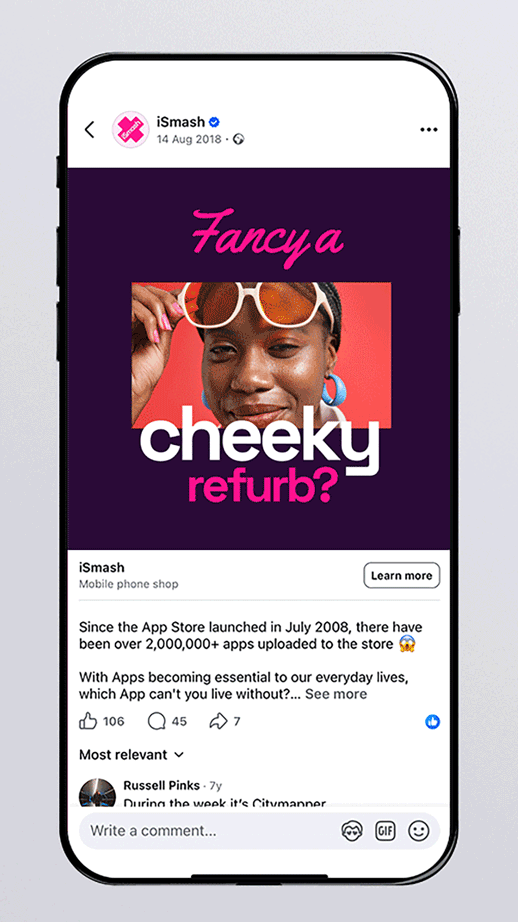 Position iSmash as the place for refurbished phones. Highlight why refurbished is smart, sustainable and better at iSmash - with in-store testing, proven repair pedigree, strong warranties and a decade of trust. Convert those already buying refurbished elsewhere, and shift new-phone buyers to consider a refurbished alternative.