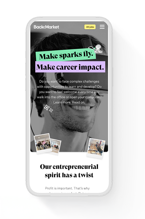 Back Market is more than just a business—it’s a growing global employer with a bold, unconventional culture. After launching their first-ever Employee Value Proposition (EVP), the next challenge was to create a careers site that reflected their unique personality and made job opportunities engaging and accessible.